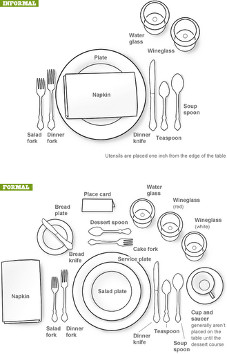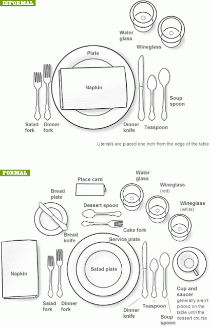 Our dinner on the 23rd was always a special meal. My mother used her fine china, crystal, and silverware only once a year, and this was the night. My mother prepared the meal, which began with shrimp cocktails and salads, then we usually had Cornish game hens, various vegetables, and real yeast rolls. Dessert was usually a homemade cheesecake. While my mother prepared the meal, my sister and I were to set the table. She would get out the Auburn Extension Cookbook which had the diagram above for setting the table, and my sister and I had to have it just perfect. We always had the meal by candlelight, and when we were finished, we then were able to sit in the living room, which was next to the dining room, and open presents (These were the presents that Santa was not going to bring us; Santa always brought the big stuff).