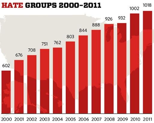 So it should come as no surprise that the number of anti-gay hate groups in the United States increased by 60% in the past year from 17 in 2010 to 27 in 2011, according to a recent Intelligence Report from the Southern Poverty Law Center (SPLC).