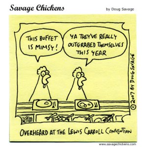 - Jabberwocky: When a class in the Girls’ Latin School in Boston asked Carroll’s permission to name their school magazine The Jabberwock, he replied: “The Anglo-Saxon word ‘wocer’ or ‘wocor’ signifies ‘offspring’ or ‘fruit’. Taking ‘jabber’ in its ordinary acceptation of ‘excited and voluble discussion,'”
