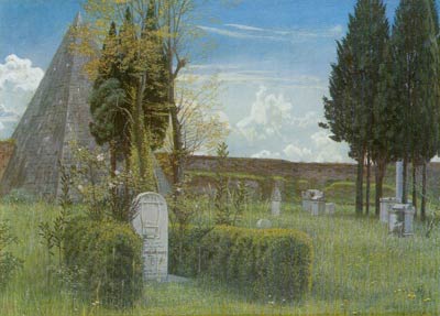 | “Shelley’s Tomb in the Protestant Cemetery in Rome” – Painted by Walter Crane, 1873. Actually, it is John Keats‘ gravestone shown here. |