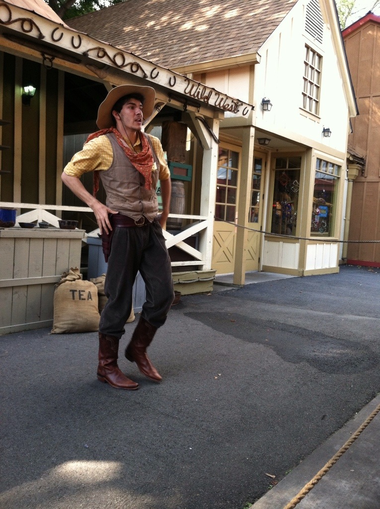 I enjoyed the Wild West part of the park, mainly because they had a cute little Wild West comedy show. The humor was goofy and fun with a mixture of modern references with some older references too. The sheriff pictured above was a cutie pie. He had a great smile and a fun personality. He put on a really good show along with his deputy and the bad guy.