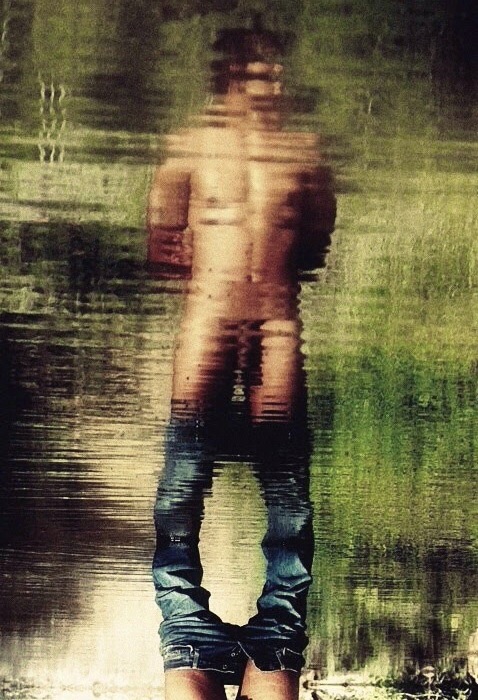 Photography is an art like any other, with the photographer as the artist. How they situate their model or what part of the scene they focus on, can tell different stories. Now to get philosophical…I am assuming that the photographer took this picture with the gay male aesthetic in mind. That being said, I would say that the photographer is attempting to make a statement about how gay men see themselves. As a community, we are far too often hypercritical of one another and that makes us hypercritical of ourselves. Therefore, we often see a distorted picture of ourselves, much like the water distorts the picture of the model. Often our distortions can be harmful to ourselves, which one might say is the reason the picture is taken with the model standing in water.