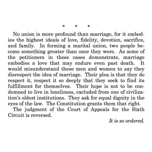 “Today the nation’s highest court has concluded that the Constitution guarantees a nationwide right to same-sex marriage.