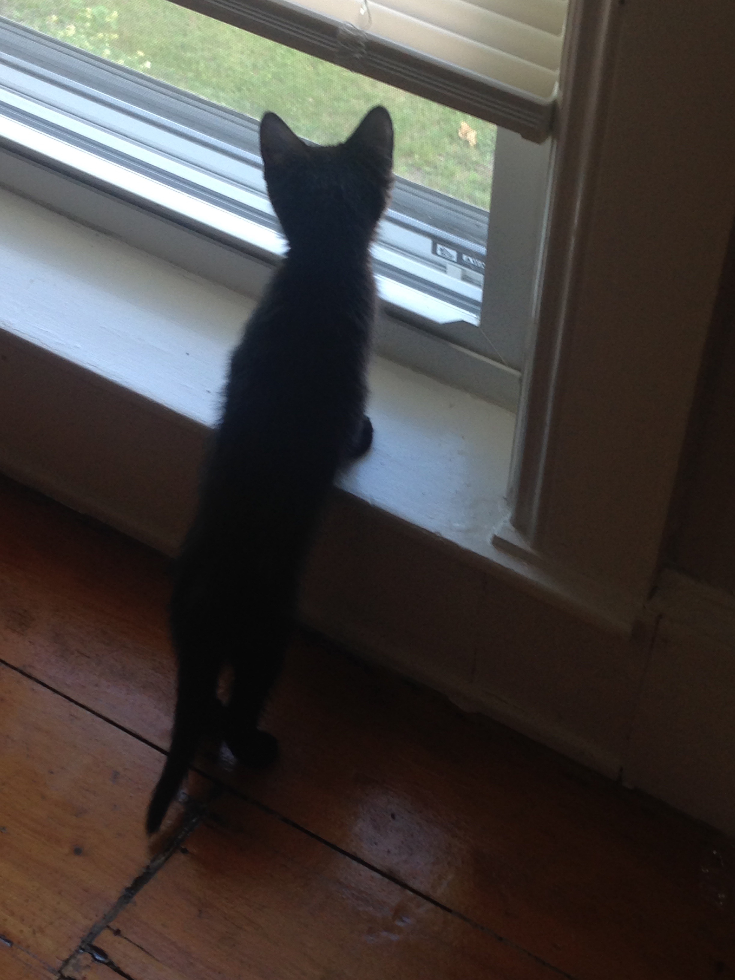 She’s a curious one for me too. I’ve only known her for a few days, so we don’t communicate very well yet. HRH and I had our communication down pat. We knew what the other was thinking and we’d often talk to one another. Right now, I think there are four things on her mind: most of all food, food, food; then play, play, play; potty, potty, potty; and least of all, sleep, sleep, sleep.