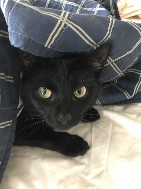 Sometimes, she likes to sleep under the covers and play with my feet. Her favorite game is fetch. She will bring me one of her toy mice or a toy fish that says catnip on the side and expects me to throw it. When I do throw it, she goes gets it and brings it back to me to throw again. She can go on like this forever and never seems to tire of the game.
