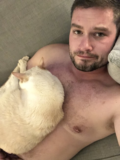 Now the guy in this picture, I could definitely take. He may not have the slim cut body that I normally feature on this blog, but he’s still cute. I love the nipple piercing, and he obviously likes cats. I even like his moderate hairiness. Yes, I could definitely go for him.