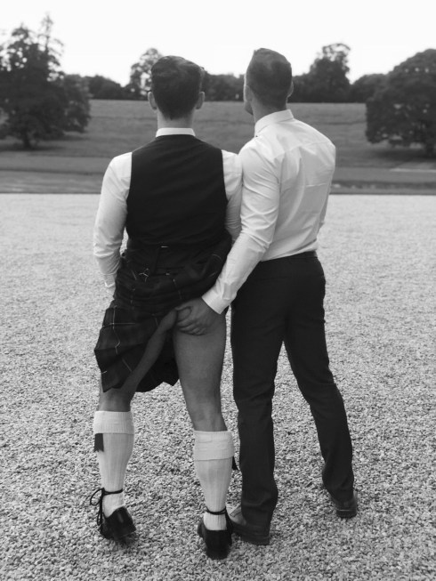I never thought of this as an advantage of kilts but I absolutely LOVE the idea. Besides, he’s got a cute ass. I suppose the kilt comes in handy to feel what’s out front too. Suddenly, I have an urge to go out to get one.