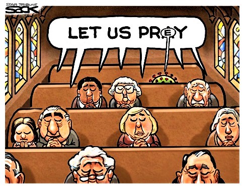 There are many problems I have with mainstream (mostly Protestant) religions. Number one amongst my reasons is they have become too intent on building their congregations for all the wrong reasons. They want money and more money. The high salary some pastors make, especially compared to the congregants, is obscene. Go to most churches and they will tell you that you must open your pockets and give more in order to build a bigger church or even to build a “family life center.” I’m not sure what basketball court, gyms, coffee shop, or a bowling alley have to do with worshipping God, but that’s what so many are doing. They are making their churches playgrounds for the masses at the expense of worshipping God. I know of many congregations back in Alabama that require an income statement in order be a member to make sure that you give your 10 percent tithing, and it’s not just in Alabama. My granny used to tell her deacon who tried to get an income statement from her that it was none of his business how much she was worth and that she may not give 10 percent to the church, but she considered charities and helping out others to be part of her tithing. (Often if she heard someone was in need, she’d get their address and send them a check to help out. She rarely told anyone about this.) When she refused to release her net worth, the church people quit visiting her. She’d been a member of that congregation longer than I have been alive, yet they turned their backs on her when she could no longer attend every Sunday. They quit communicating with her altogether when she went into an assisted living facility in nearby Montgomery. If they couldn’t get her money, they had no use for her. Millions of dollars are being lost because people aren’t putting money in collection plates. Churches are desperate to have regular services start up again, and Trump is playing to his base pandering for votes at their expense and health. Churches have become business instead of places of worship.