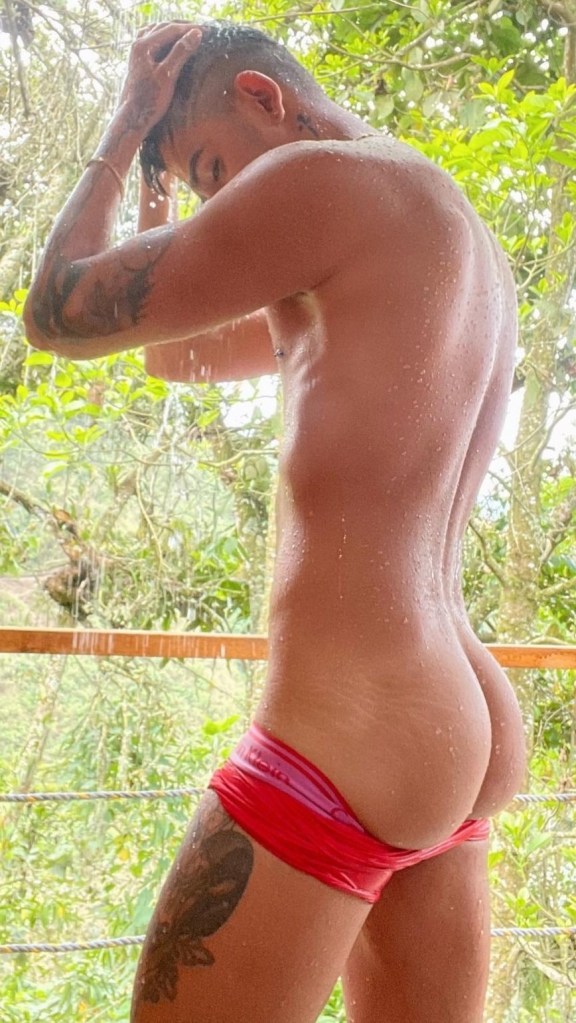 English translation: When you’ve been too hot all day and haven’t even taken the time to get fully naked…
