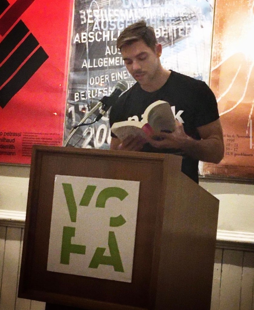 Also, I had to include the second picture of Chris because it is of him speaking at the Vermont College of Fine Arts, which recently announced it would no longer be holding classes/residency in Vermont anymore. I am familiar with VCFA for several reasons, not least because for a brief while, I dated a guy who was attending VCFA, but it never really went anywhere.