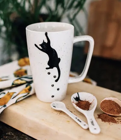 I had such a fun weekend. My friends and I went up to Church Street in Burlington Friday night, just as we planned. The only hiccup was that traffic was terrible on I-89, so it took twice as long to get up there, and that did not leave us with much time to check out the sales during Church Street’s annual sidewalk sale. We basically went to two stores. First, we went to Kiss the Cook, which, just as it sounds, is a kitchen store. All three of us enjoy cooking. Well, I enjoy cooking; they enjoy baking. They got a few things, but I didn’t buy anything there. Then we went to Ten Thousand Villages. There, I bought something. They had the cutest coffee mug with a black cat crawling up the sides. They also had some black cat bookends, but I did not buy them. The coffee mug, though, I coudl not resist.