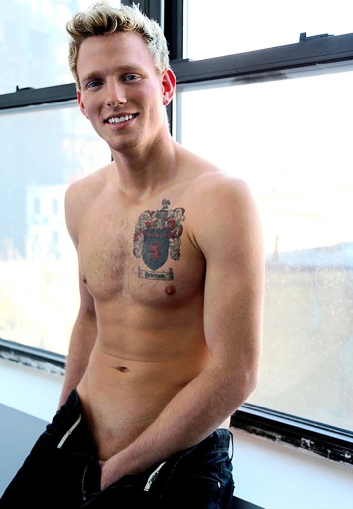 My taste in men varies wildly, as you can tell by the pictures I post on this blog, but since I was 13 years old and first saw the guy that would be the center of my fantasies and dreams all through middle and high school, I have had one particular type of guy that makes me weak in the knees with lust. Hayden Lourd, the guy above, did a few videos for Cocky Boys and then seemed to disappear from the adult industry, as far as I can tell. Cocky Boys’ description of him says, “From the moment we met Hayden, he was cracking us up with his ‘live & let live’ attitude, raw masculinity, sexual energy. We were punch drunk. His sexy smile, at one moment innocent and playful, could just as easily tease and seduce before becoming an evil grin that could melt the pants off a lumberjack!” He sounds just like my type. He has the attitude and look that is my weakness. He is tall at 6’1”, just the right amount of muscles, fair hair and complexion, and crystal blue eyes. The hair and complexion always get me, especially when they are blond and have that pinkish complexion that so easily turns red for any number of emotions. In one video, his scene partner, Levi Carter, says Hayden is big in every way. I’ve seen all of him, and I’d have to agree. Plus, he has an ass to die for. I could watch this man all day. He epitomizes my type and reminds me very much of that guy who was my first crush.