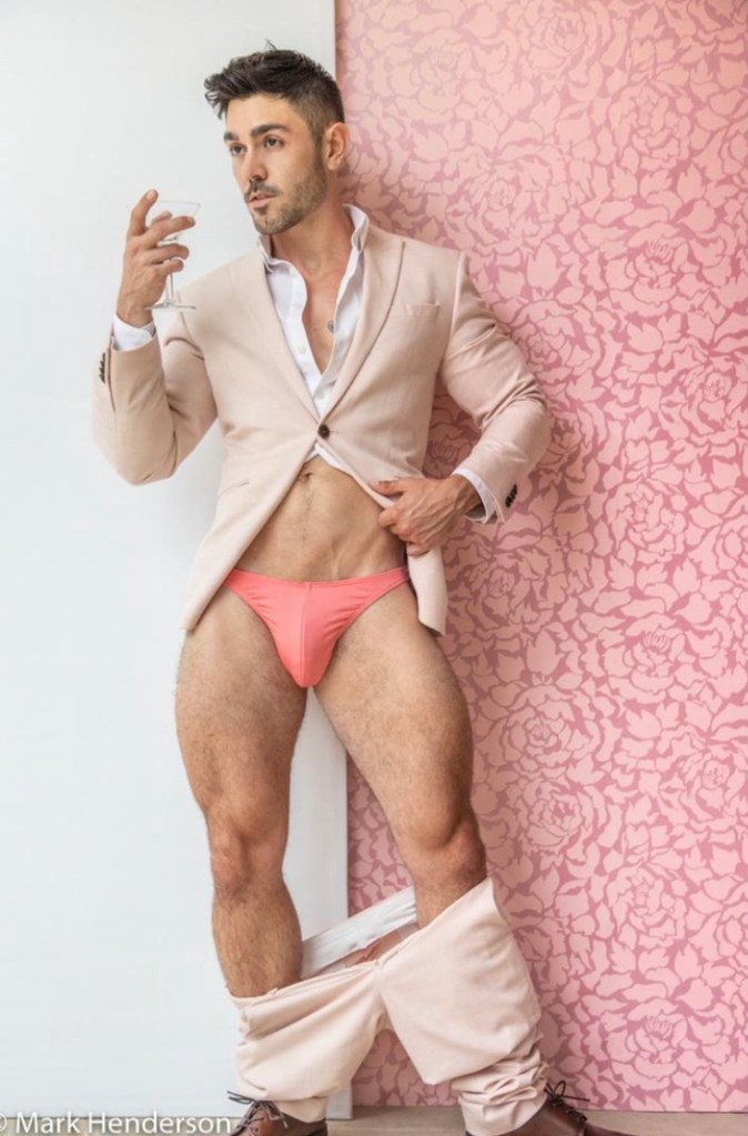 This picture might not be to everyone’s taste, but I like it. I like it for two reasons: 1) Nico Coopa is one very sexy man, and 2) the picture reminds me of spring fashion. Pink and green exude spring to me, and this picture certainly has a lot of pink, and Nico looks damn good in pink.
