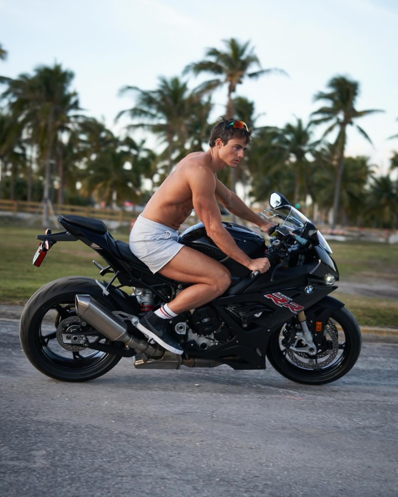 Years ago, back when I was in graduate school and living in Mississippi, I remember I was at a CVS and across the street there was a shirtless guy sitting on a motorcycle. I am not particularly a fan of motorcycles. (I think they are loud and annoying, and my brother-in-law has spent money on his motorcycles that should have been going to clothes or other necessities for his wife and kids. However, that’s getting off on a tangent, and I don’t really want to offend anyone who’s a motorcycle enthusiast.) On that particular day, which was probably twenty years ago, I just remember how hot and sexy that guy looked in his motorcycle. I know it’s dangerous to ride without wearing more protective clothing and a helmet, but damn, did seeing that shirtless guy with a fantastic body get my motor revving. I remember the motorcycle he was on is what we usually called a “crotch rocket.” If you’re unfamiliar with the term, crotch rocket is slang for a racing-style motorcycle, a sport bike, with an aerodynamic body shape that keeps the rider leaning forward and down. Below is a picture of a “crotch rocket” and one of the sexiest models in history, Pietro Boselli. The picture below reminds me of the guy I saw that day.