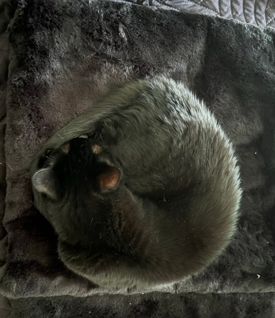 I call this her invisibility cloak. She blends in so well, I don’t even see her sometimes when I’m not looking directly at her.