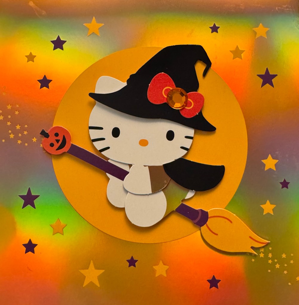 Each year, my friend Susan send me a Halloween card. This year she sent two. The Hello Kitty cards are always cute no matter what occasion they are for, but I think they are especially cute when they are Halloween cards. The other card she sent looks a lot like Isabella. Black cats get a bad reputation for being bad luck, though they are not seen as bad luck all over the world, but it’s a persisting superstition in the United States. One of the joys of having a black cat is that I have a natural decoration for Halloween, especially when she stands in the window and stares out at people.