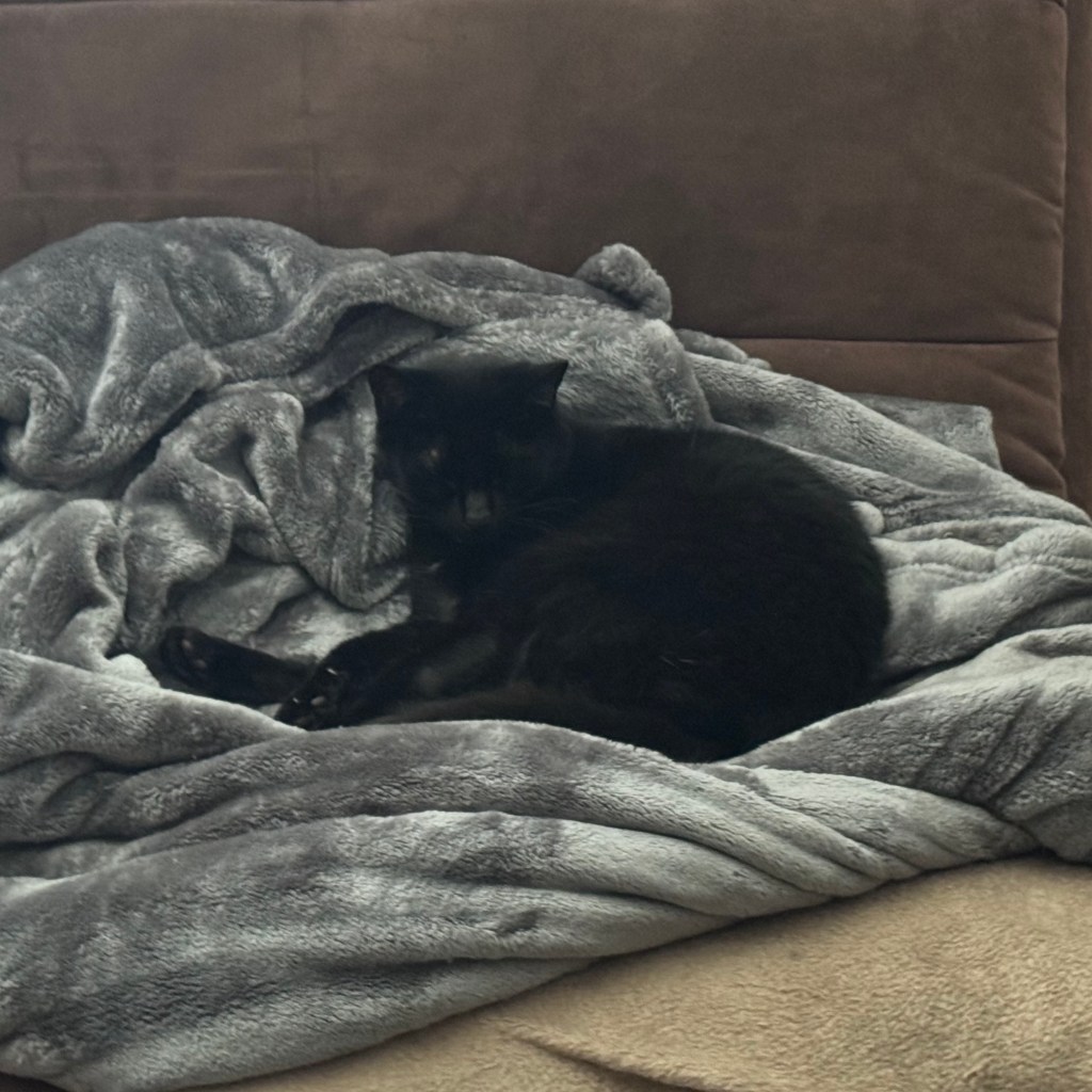 And of course, no week is complete without the Isabella Pic of the Week—Her Majesty all curled up in a soft gray blanket, perfectly demonstrating how to do rest and relaxation the right way.