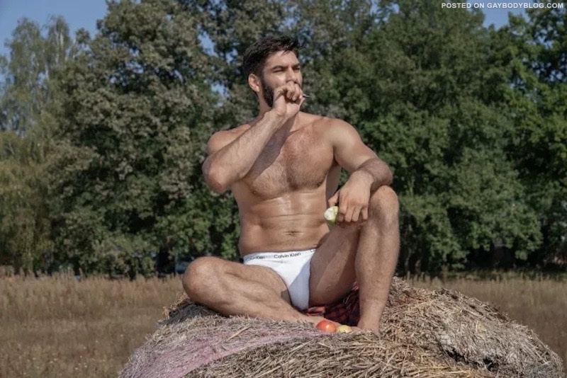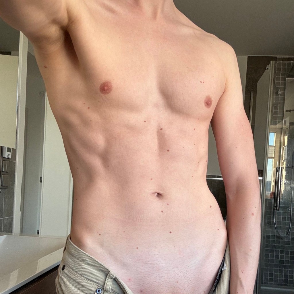 With the advent of photography, the torso remained central to the visual exploration of masculinity. Mark Ashkenazi’s Male Abs turns the torso into an icon of modern fitness culture, a sleek and stylized emblem of desire. In contrast, Tom Bianchi’s Fire Island Pines, Polaroids: 1975–1983 (published 2013) presents torsos in intimate, personal settings. One image in particular, where Bianchi himself appears on the right, captures not just form but community, sensuality, and queer joy. Robert Mapplethorpe’s photograph of Derrick Cross isolates the male torso with sculptural precision, transforming flesh and muscle into a study of form, texture, and shadow that blurs the line between portrait and classical sculpture.