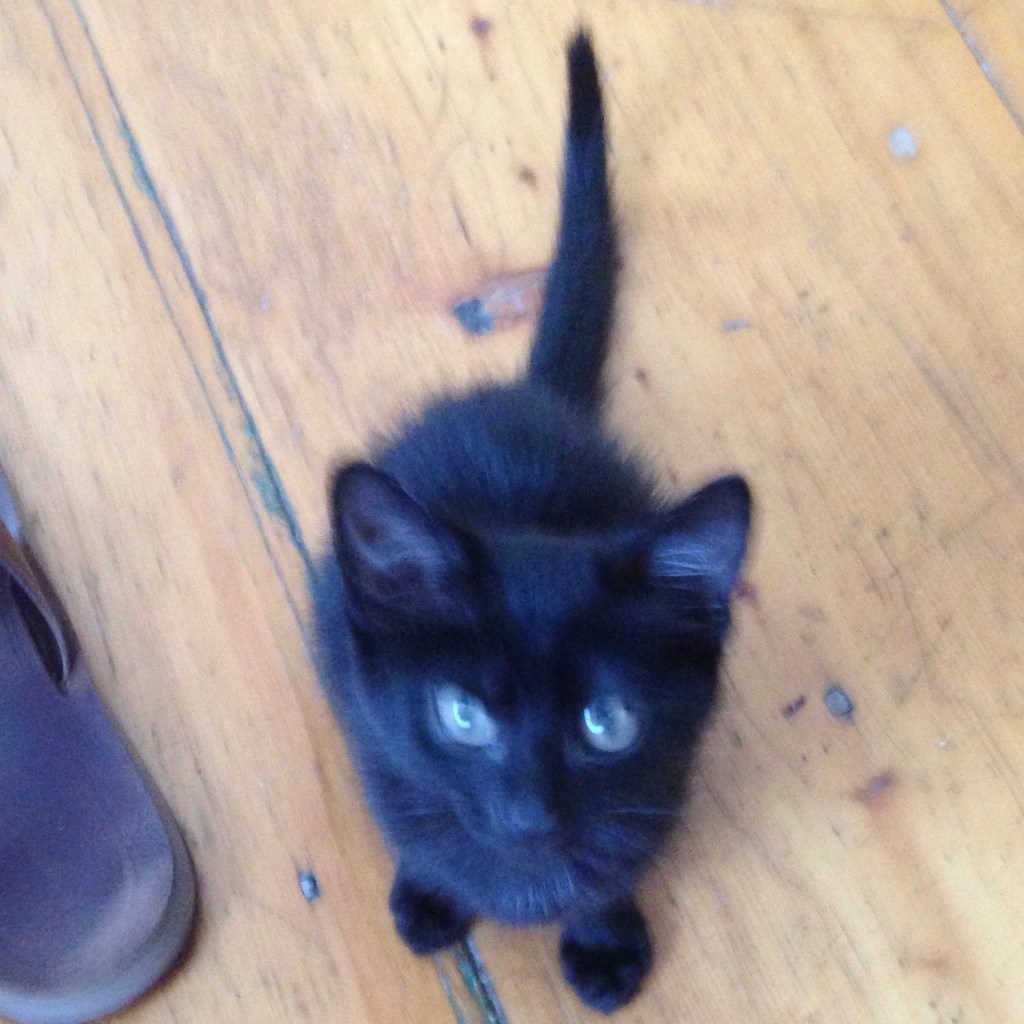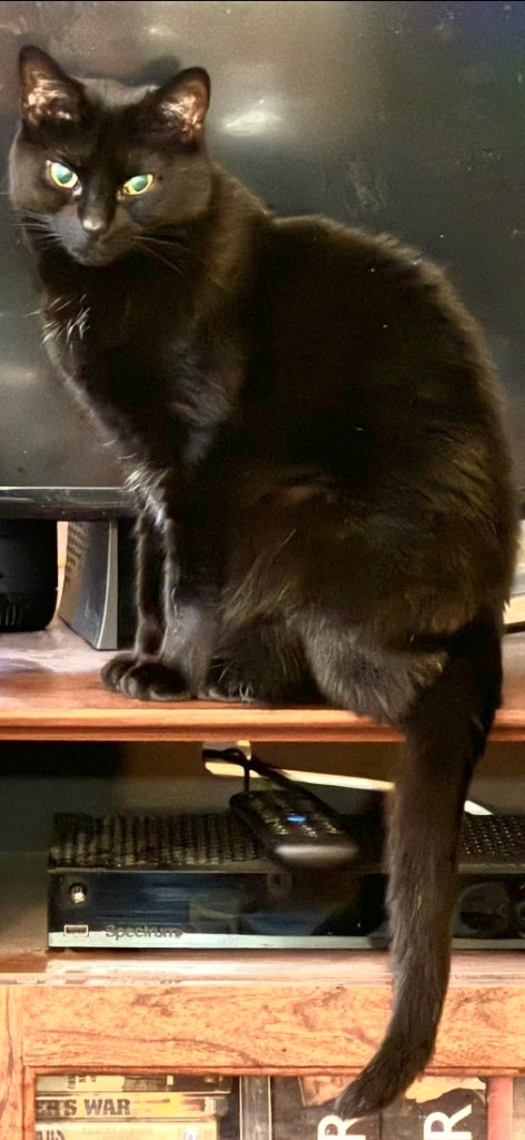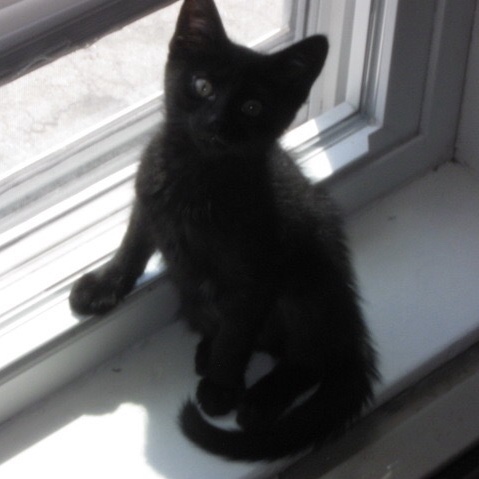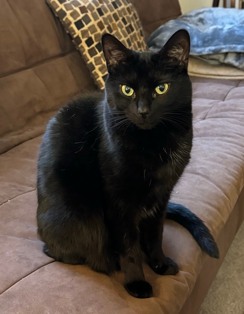 I went to the local humane society and told them I wanted to adopt a kitten. They said they had four—three males and one female. The three males were tumbling over each other, full of energy and mischief. But off to the side, tucked under a chair, was a small, solid black kitten—quiet, a little frightened, and completely alone.