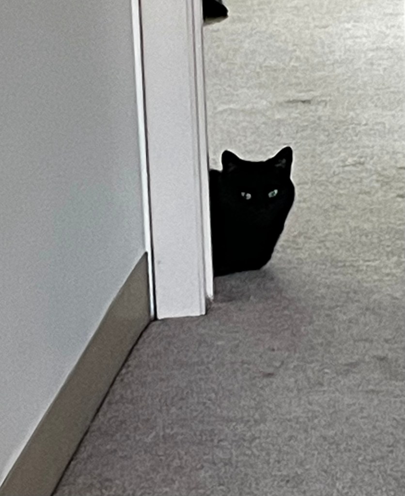 She’s not exactly a cuddler, at least not in the traditional sense. She doesn’t curl up in my arms or demand constant affection. But she is always near. Always in the same room. Sometimes under the bed, sometimes tucked into a corner, sometimes simply watching. And when she does want to be close, she’ll come lay across my hip.