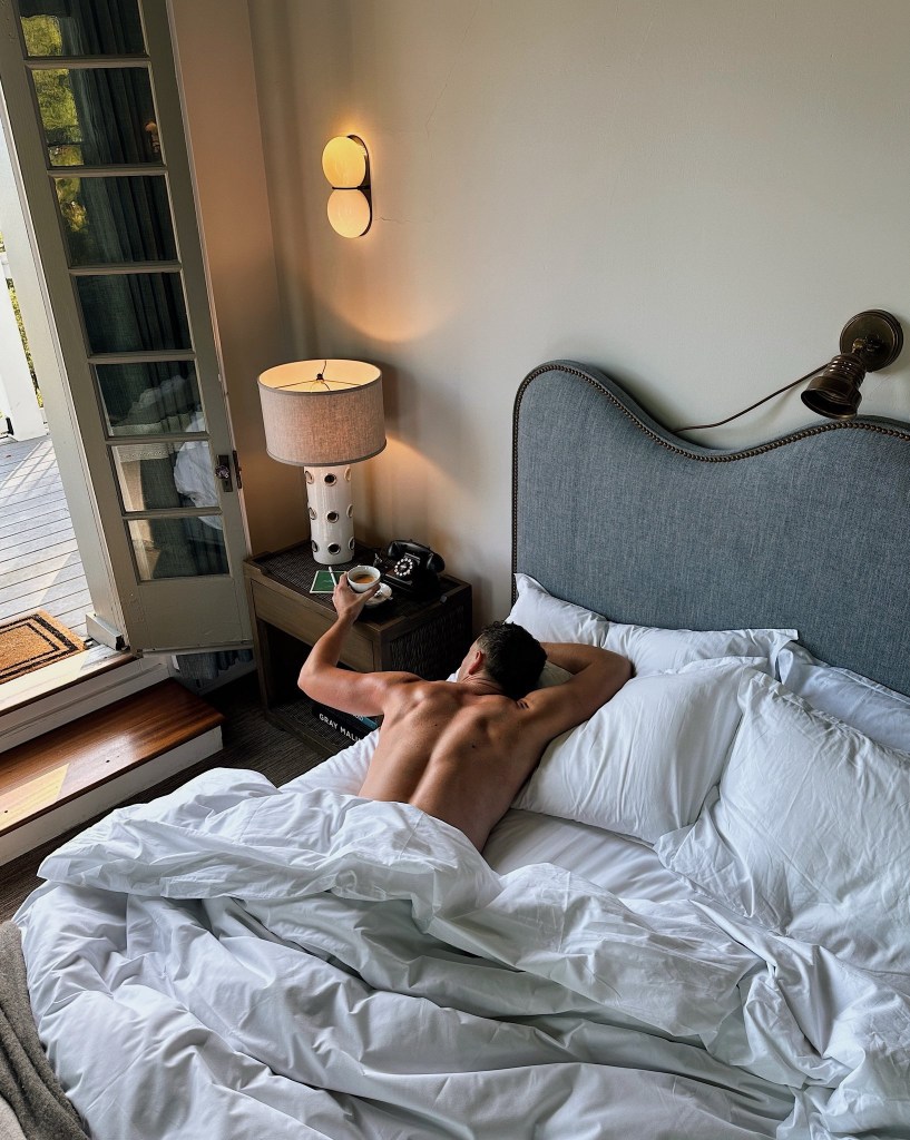 I fell asleep again almost instantly and drifted into the loveliest dream. In it, I was snuggled up next to a very handsome man—the kind of hot guy who makes your subconscious say, “Yes, let’s stay here.” He was straight in the dream, but we were sharing a bed anyway. Somehow the night had ended with us in nothing but our underwear, my head on his bare chest, his arm around me, the whole moment soft and warm and unexpectedly intimate.