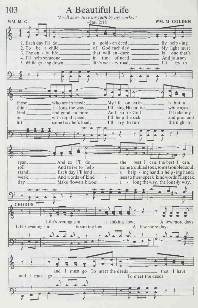 James Cleveland Moore had intended to become a Baptist preacher. He was educated at Draketown Baptist Institute, Mercer University in Macon, Georgia, and the University of Florida. He received musical training. At 26 years old, while a seminary student at Mercer, Moore visited his hometown church to preach at Draketown Baptist Church. His father, Charles Robert Moore, had led the singing for years. Hearing his father’s voice failing him, Moore knew that he would not hear his father sing much longer due to his father’s advanced age. After returning to school, Moore produced the hymn and dedicated his song as: “Dedicated to My Father and Mother.” The song was not published until around 1930.