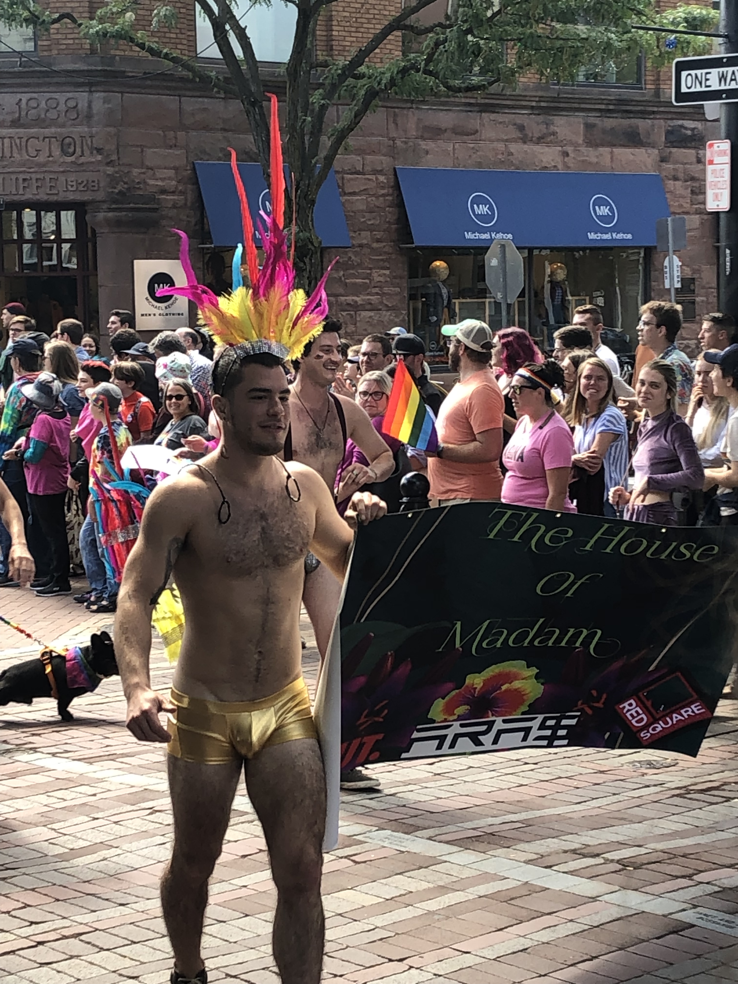 After the Parade, there was a Pride Festival but I couldn’t find parking anywhere nearby, so I decided to run some errands in Burlington and wait for the Burly Bears party to begin. When the time came, I went to the Burly Bears party at Red Square. The staff at Red Square, from security to the bartenders, were all shirtless. They were fun to admire. They also had some go-go boys dancing in little gold shorts that left little to the imagination. They had marched earlier with the House of Madam which you saw a picture of Monday. I mingled a little bit. I talked to Emoji for a while and saw the LeMay Sisters. I stayed for about two hours then headed home.
