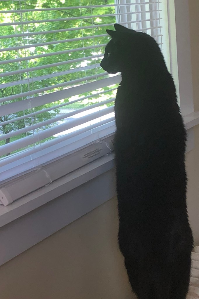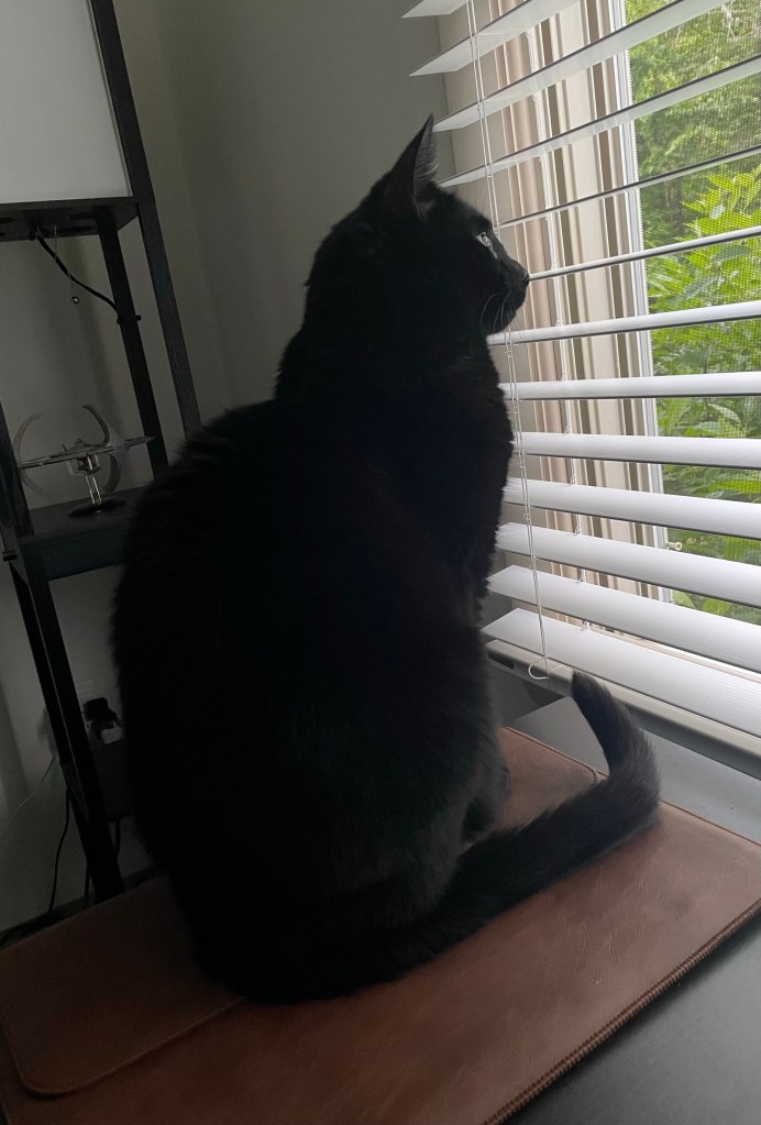 This is about as close as I get to her cuddling. She’s not a cuddly cat, and she also seems to not like her picture being taken.