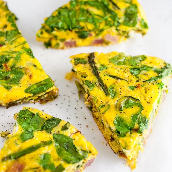 Notes This Ham, Cheese, and Asparagus Frittata recipe is easy and makes a healthy breakfast. This baked vegetable frittata is great for brunch or a quick dinner!